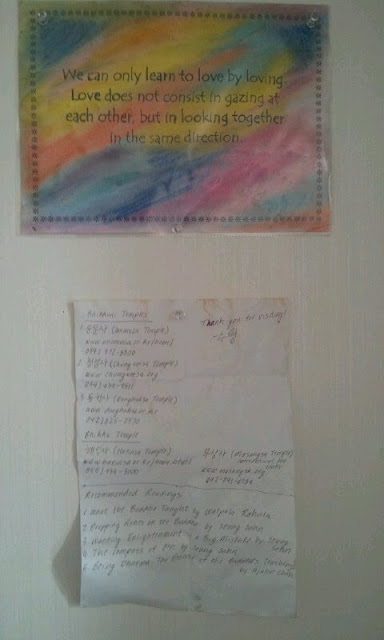 Just a quote I found online. I love it! I printed it and used pastel chalk to color the paper then put it in a plastic slip cover and put it on my wall. Under it is the list of books and temple the young monk in training gave me after my temple stay.