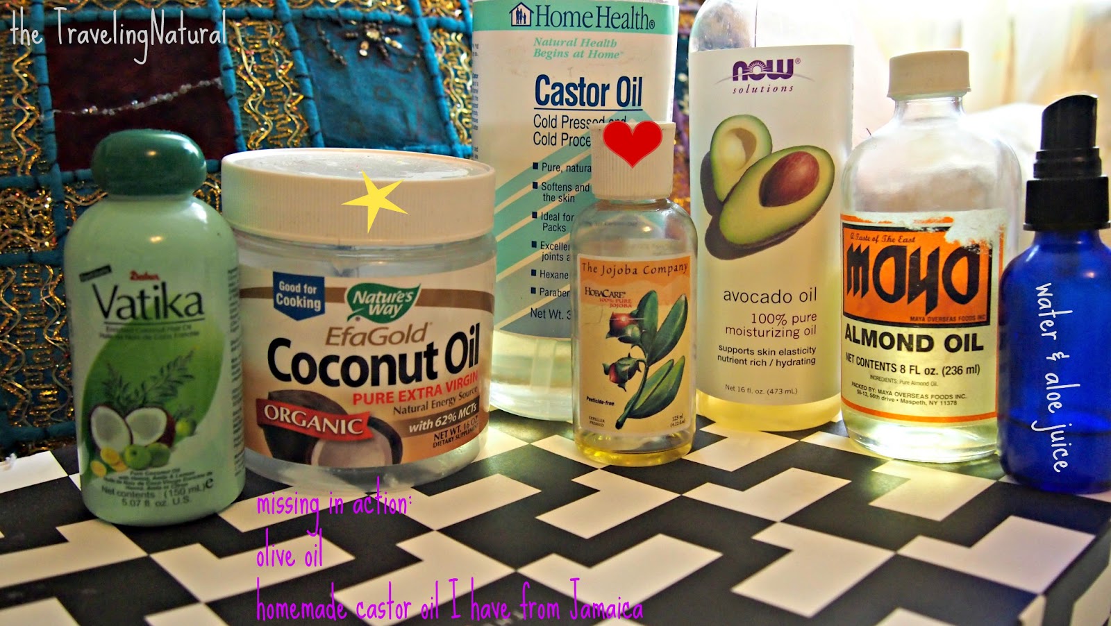 Cool! I use some of the same oils. Olive, almond, jojoba, and coconut oil are my basic staples and all I really use to moisturize my hair. I fear becoming a product junkie too, so I keep it to a minimum. I like the Aubrey Organics J.A.Y. and Honeysuckle Rose Shampoos for their moisture. With baggage fees and weight requirements, I agree with keeping things light and finding products in the local markets of the countries you visit when possible.