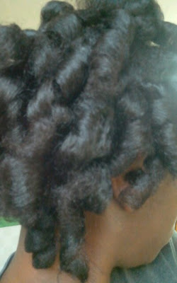 I must add that on Monday it was very misty and humid out. When I left work and walked to the bus stop my curls were gone. I ended up with what looked like a blown out Fro.